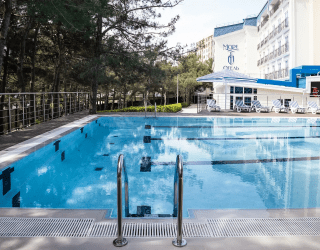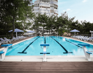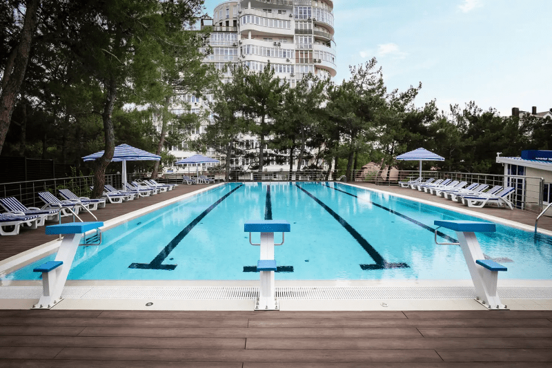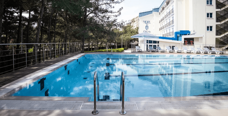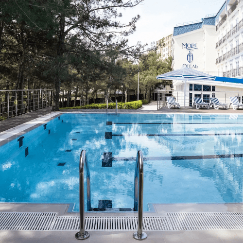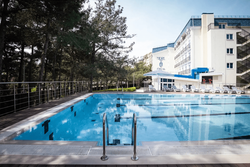 К услугам гостей 25-метровый подогреваемый бассейн, детский бассейн, детские и спортивные площадки, амфитеатр для просмотра ярких спортивных событий, мировых киношедевров и мультфильмов для детей, тематические вечеринки. Также имеется парковка, Wi-Fi, камера хранения, услуги прачечной, трансфера, экскурсии на комфортабельном микроавтобусе и охраняемая территория. Пляж песчано-галечный, оборудован для комфортного отдыха.